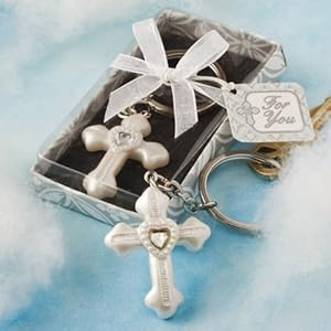 Let your faith shine through with these cherished cross key rings as your favors Fitting for almost any religious occasion, these favors will remind your invited guests of life's blessings serious amounts of time again. Each 3" by 1" favor includes a white resin cross having a dramatic heart shaped rhinestone at its center, attached with a metal chain and key ring. Part of Fashioncraft's number of key ring favors for each occasion, each comes attractively packaged in the deluxe clear top gift box which has a silver having a white floral design bottom wrapped which has a white organza bow with a cross themed rectangular-shaped for you tag attached. ... This unique & elegant item is portion of our exclusive Wedding Favor and Bridal - Baby Shower collection. They've created for a fantastic and unique gift for the wedding reception, bridal shower, bay shower or some other special event.