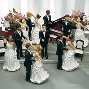 Now your cake decorations may be as personal so that as special when you are. These fashionable and culturally diverse Brides and Grooms stand poised to embrace. Mix and match the partners to create a custom figuring that reflects your unique ethnic blend. Each partner comes separately.Presently the Bride and Groom Cake Toppers are available with skin tones and hair colors only as shown. Groom Measurements: 2" Long x 2" Wide x 6.75" High Bride Measurements: 3.25" Long x 3.25" Wide x 6.25" High Bald Caucasian Groom Measurements: 1.25" Long, 6.75" Tall, Weight: 4.8 oz - 0.30 lb., Base: 1-3 8 x 1-3 16 Bald African American Groom Measurements: 1.25" Long, 6.75" Tall, Weight: 5.6 oz - 0.35 lb., Base: 1-3 16 x 1-3 8 Figurines are sold separately. ... This unique & elegant item is section of our exclusive Wedding Favor and Bridal - Baby Shower collection. They've created for a great and unique gift to your wedding reception, bridal shower, bay shower or any other special event.