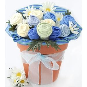 Garden Pot Baby Clothing Bouquet - BLUE for BOYS - More Practical for New Moms Than Real Flowers - Unique Shower Gift Idea